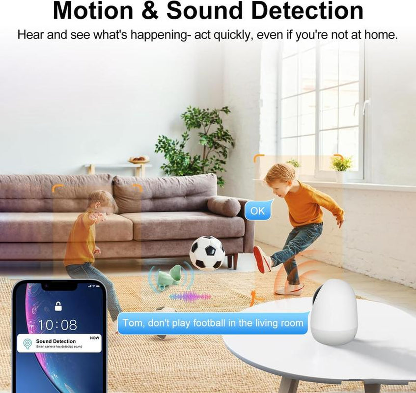 detection. Equipped with high - sensitivity sensors, this security cameras indoor instantly detects any motion or sound. From the pet's movements to the baby's crying, it will send real-time messages, providing peace of mind all day long.