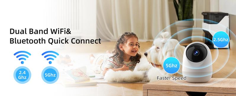 Dual-Band Connectivity & Versatile Monitoring: This advanced indoor security camera supports both 5Ghz and 2.4Ghz WiFi, ensuring stable and fast connections. Its Bluetooth quick pairing feature allows hassle-free setup, making it ideal for monitoring babies and pets in real time—no more frustrating connection drops or delays. Whether you’re at home or away, stay connected effortlessly.