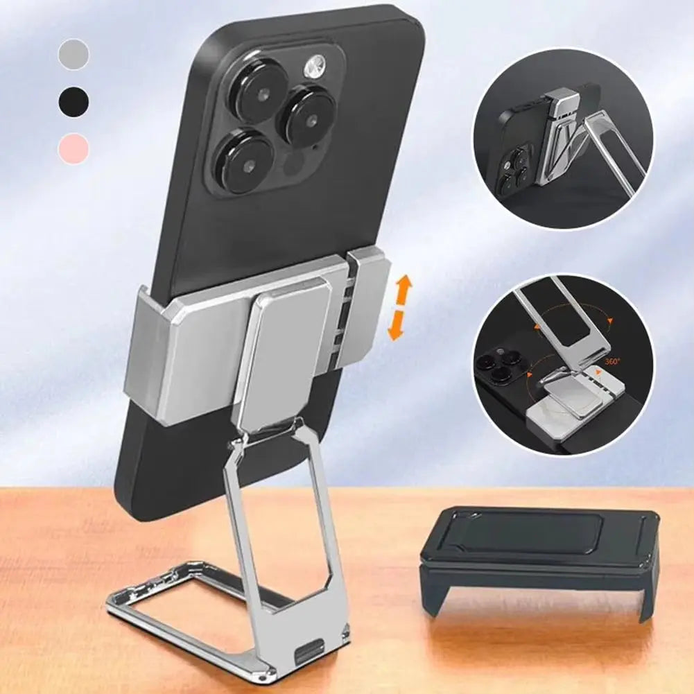 Back Fixed Clip Foldable Phone Holder Magnetic Metal Phone Support 360° Rotated Adjustable Desktop Phone Bracket for Travel