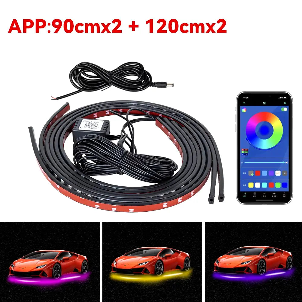 Car Underbody Light Decorative Lamp Neon LED RGB Car Underglow Bottom Light Remote/App Control Flexible Waterproof LED Strip