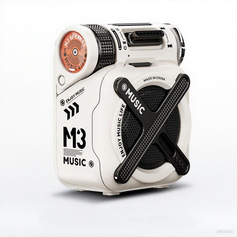 CY Audio Mini Portable Bluetooth Speaker M3 - Studio 3D Sound Bass Boom Wireless Lasting PARTY POWER Surround Sound Dual-Pairing Waterproof Racing Style Perfect Gift Suitable for Office Sports Outdoors Travel White Compact Stereo
