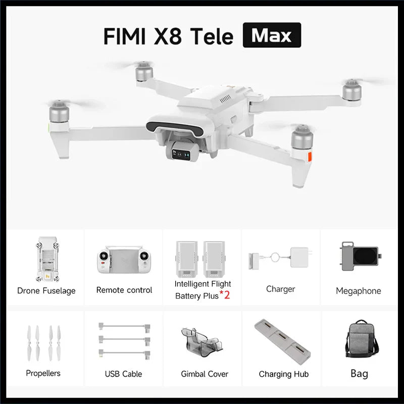 Dron FIMI X8 Tele Max con alcance de 20 km, cámara telescópica gran angular, zoom híbrido de 30x, 4K, 60 fps, cardán de 3 ejes, GPS, IA, video nocturno superrápido