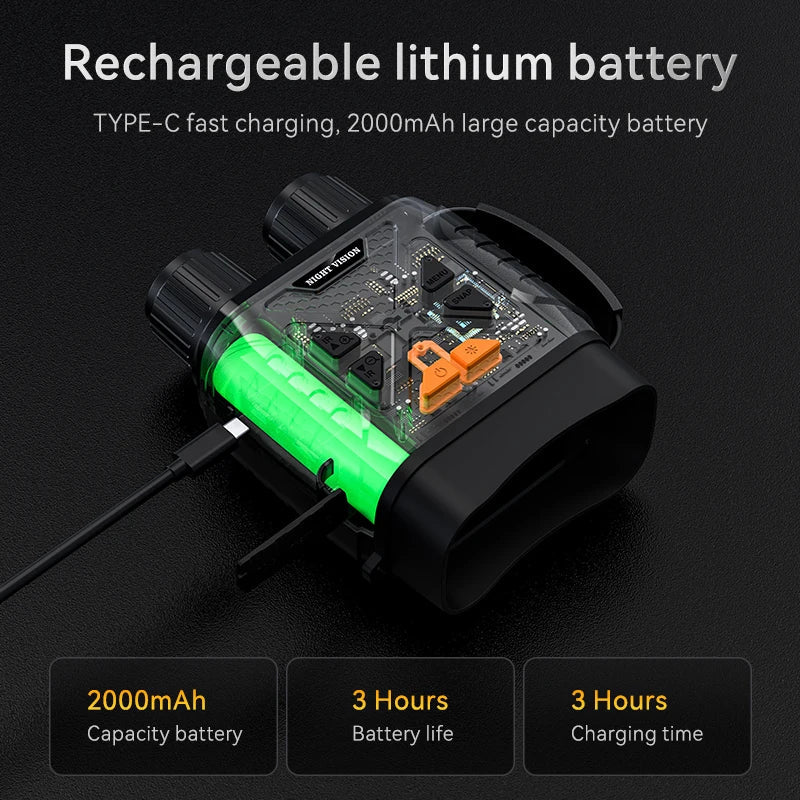 ● Binoculares de visión nocturna de alto rendimiento con iluminador IR de 3 W y tecnología infrarroja de 850 NM, que brindan una visión clara incluso en completa oscuridad.