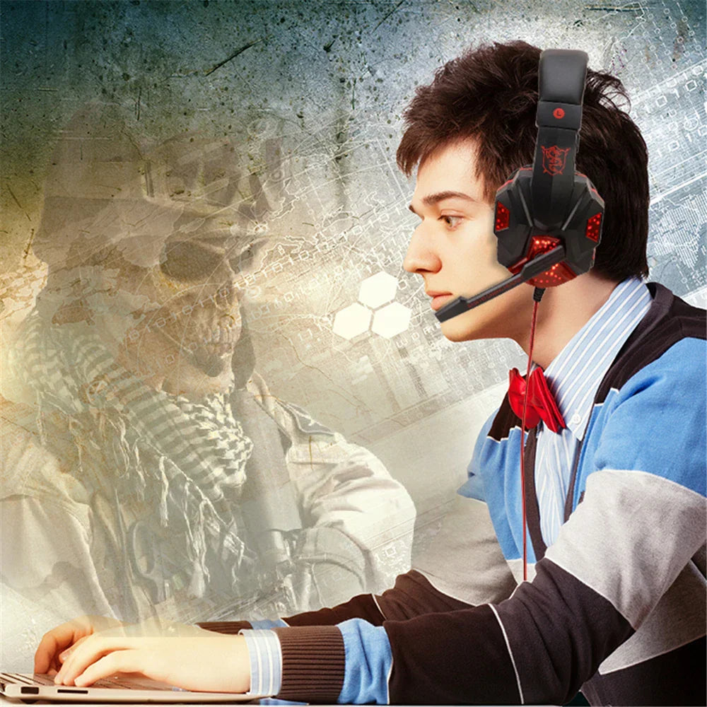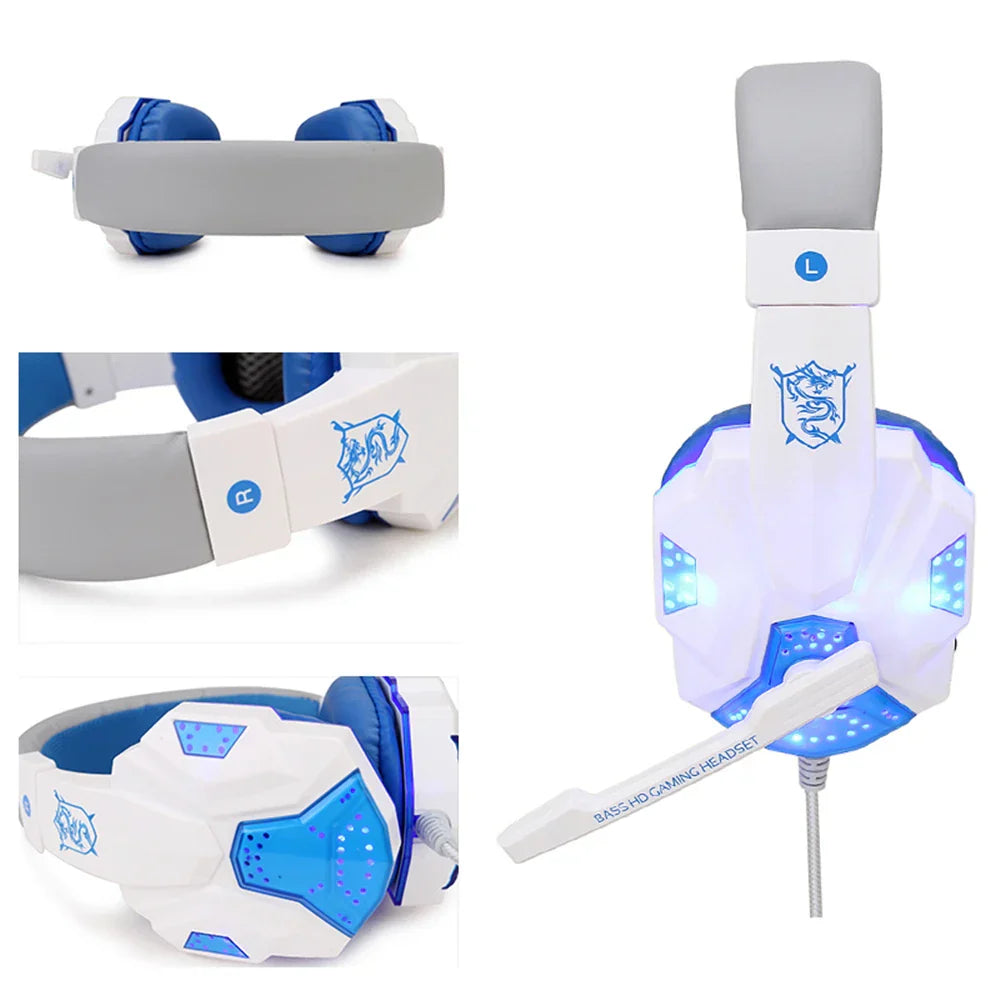 LED Light Wired Gaming Headphones With Microphone Noise-cancelling Gamer Headset for PC Computer Laptop PS4 PS5 Xbox