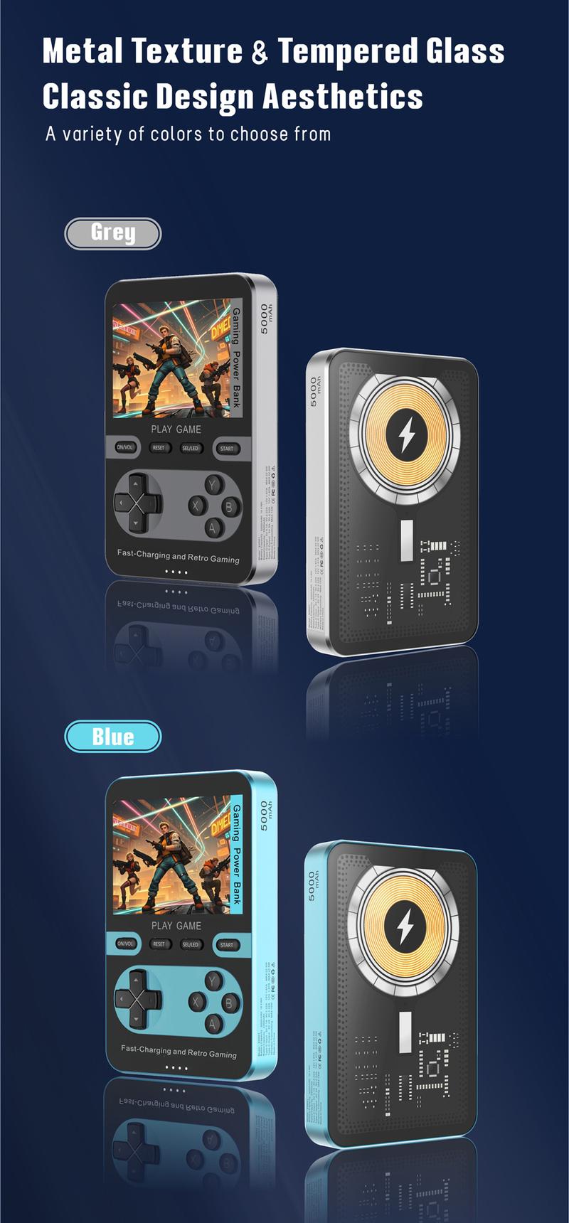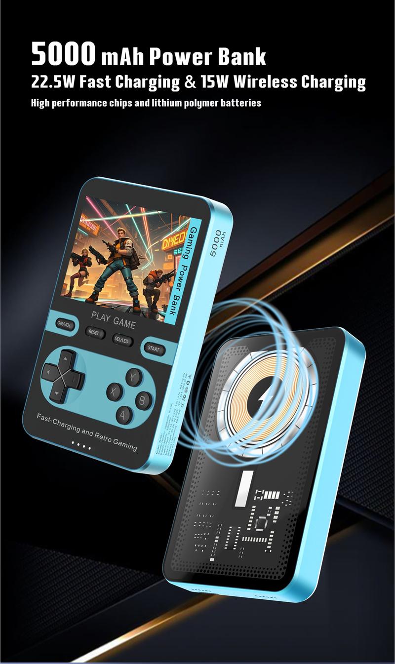 Magnetic Gaming Power Bank, 5000Mah Wireless Fast Charger for Iphone 16/15/14/13/12/Smartphone, Retro Game Console with 500+ Built-In Games Perfect for Kids & Adults - Portable Gaming System