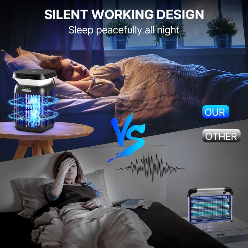 This triple-function device serves as a high-efficiency mosquito killer, soft-glow LED night light for indoor navigation, and emergency SOS signal light (flashing mode). The dual-intensity lighting offers a warm ambient glow for nighttime use and a bright emergency beacon for outdoor safety, all while eliminating mosquitoes through physical trapping technology.