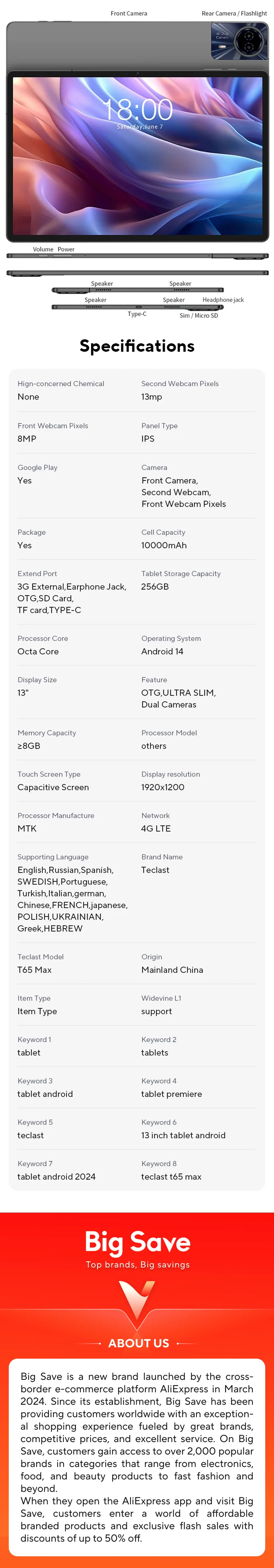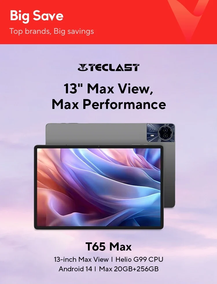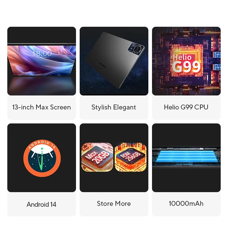 【World Premiere】Teclast T65 Max 13" HD Display Android 14 Tablet MediaTek G99 8GB RAM 256GB ROM 10000mAh Battery Widevine L1